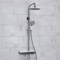 Купил в душевой уголок, всегда хотелось большую верхнюю лейку. Круто смотрится, термостат не подводит, ручная лейка легкая и тоже не маленькая. Мне нравится и жена довольна.