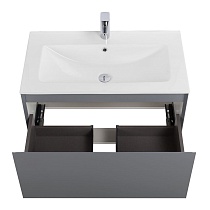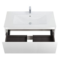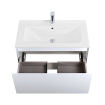 Очень симпатичная мебель, купила в белом цвете. Интересна раковина с декоративной накладкой на слив, создается впечатление, что слива вообще нет, а вода впитывается в саму раковину. Возле стены толстый бортик, на него я поставила стакан с зубными счетками и мыльницу. Тумба с двумя ящиками, один узкий, для мелочевки, а второй чуть по-больше. Открываются и закрываются плавно, потому что с доводчиками. Много в них не положишь, но я покупала только из-за внешнего вида, смотрится легкой, аккуратной. О покупке не жалею.