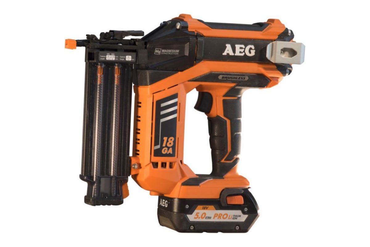 Аккумуляторный гвоздезабиватель AEG B18N18 LI-201C 4935451536 служит для забивания гвоздей 18 калибра (1.2 мм). Имеет режим быстрого удара и режим единичного удара.