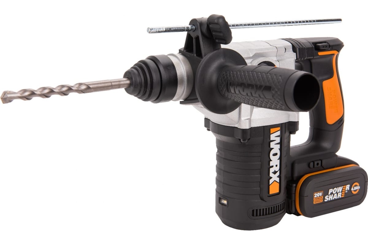 Аккумуляторный перфоратор WORX WX392 обладает высокой мощностью, позволяя легко сверлить бетон, металл или кирпичную кладку.