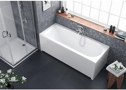 Классическая прямоугольная ванна из литого акрила чистого белого цвета. Дно ванны усилено ДСП-плитой.