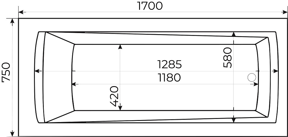 Длина, см?Длина акриловой ванны - это максимальное расстояние между точками расположенными на внешнем контуре ванны, в параллельном направлении наиболее длинной стороны для приставной ванны или просто максимальное расстояние между точками на внешнем контуре для отдельностоящей ванны.170