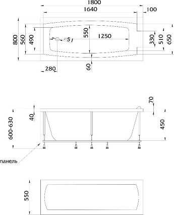Высота, см?Высота ванны - это расстояние от пола до верхней точки ванны. Как правило у акриловых ванн установлены регулируемые ножки, что позволяет добиться устойчивого положения ванны на полу, даже в случае ели у него в разных местах существует перепад высот.63