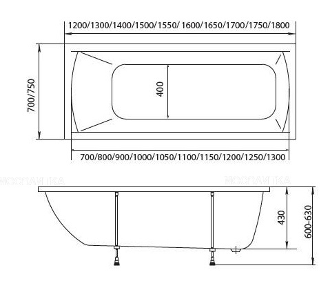 Акриловая ванна Modalia 180x75 см 9-18075