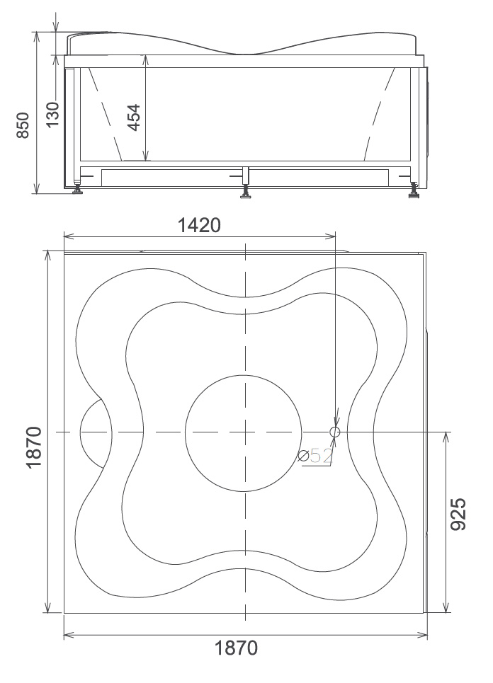 Высота, см?Высота ванны - это расстояние от пола до верхней точки ванны. Как правило у акриловых ванн установлены регулируемые ножки, что позволяет добиться устойчивого положения ванны на полу, даже в случае ели у него в разных местах существует перепад высот.85