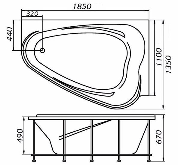 Высота, см?Высота ванны - это расстояние от пола до верхней точки ванны. Как правило у акриловых ванн установлены регулируемые ножки, что позволяет добиться устойчивого положения ванны на полу, даже в случае ели у него в разных местах существует перепад высот.68