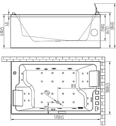 Высота, см?Высота ванны - это расстояние от пола до верхней точки ванны. Как правило у акриловых ванн установлены регулируемые ножки, что позволяет добиться устойчивого положения ванны на полу, даже в случае ели у него в разных местах существует перепад высот.63