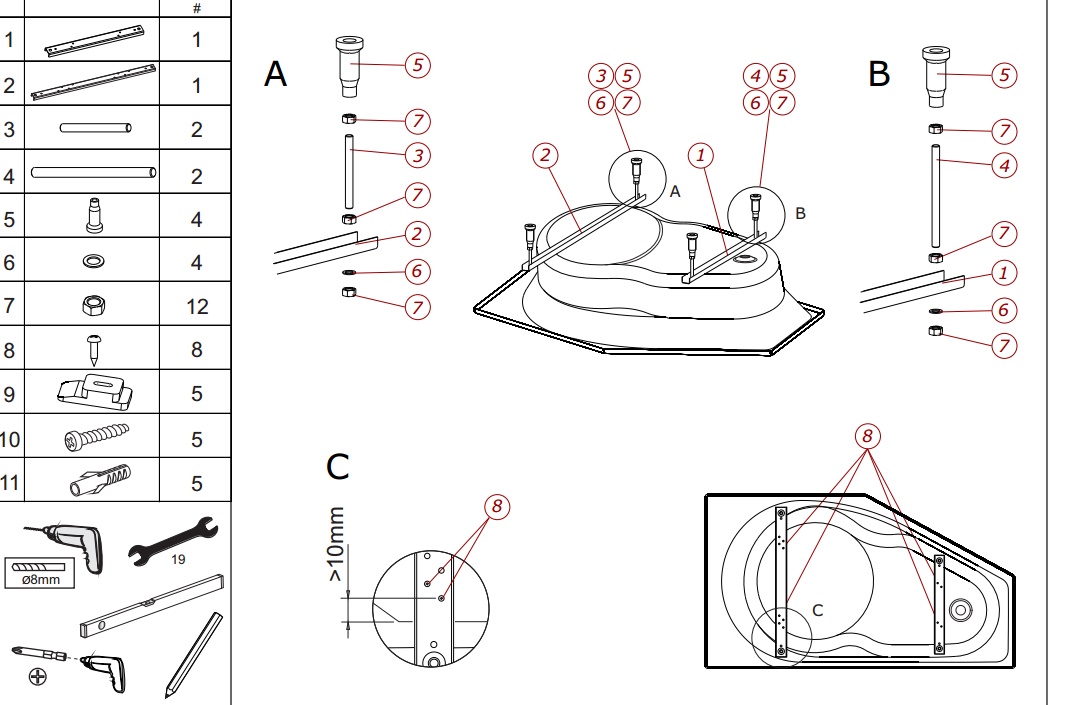 Толщина акрила, мм?Толщина акрила ванны может составлять от 2-х до 6.5 мм. Чем больше толщина акрилового листа у ванны, тем дольше она будет вам служить. Так например, если толщина листа составляет от 2-х до 4-х мм, такая ванна прослужит вам 5-8 лет, если толщина от 4-х до 5-ти мм, эта прослужит уже 8-12 лет, а если толщина акрилового листа от 5-ти мм, то такая ванна способна прослужить уже до 20-ти лет. Также толщина листа говорит о возможности полировки ванны, чем толще лист, тем большее количество раз можно выполнять этот процесс.5