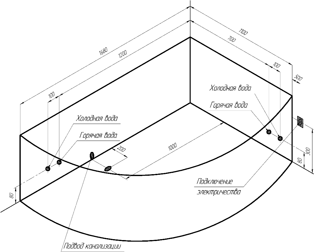 Расположение ванныЛевый угол