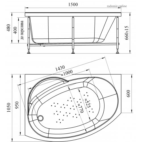 Высота, см?Высота ванны - это расстояние от пола до верхней точки ванны. Как правило у акриловых ванн установлены регулируемые ножки, что позволяет добиться устойчивого положения ванны на полу, даже в случае ели у него в разных местах существует перепад высот.66