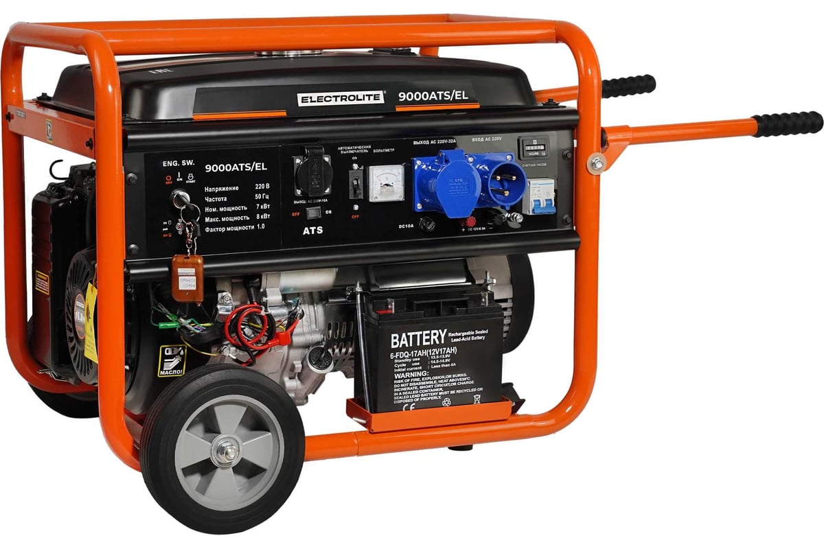 Бензогенератор Electrolite 9000ATS/EL 7 кВт имеет высокий КПД, и экономичен в использовании. Генератор выдает 7 кВт и стабилизирует выходное напряжение, что важно при подключении чувствительной техники- телевизоры, радиоаппаратура, бытовые и строительные приборы.