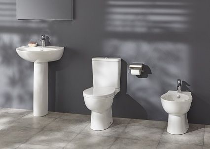 Ширина бачка 380 мм. Отверстие подвода для воды на высоте 280 мм от основания унитаза. Выпуск горизонтальный диаметром 102 мм.