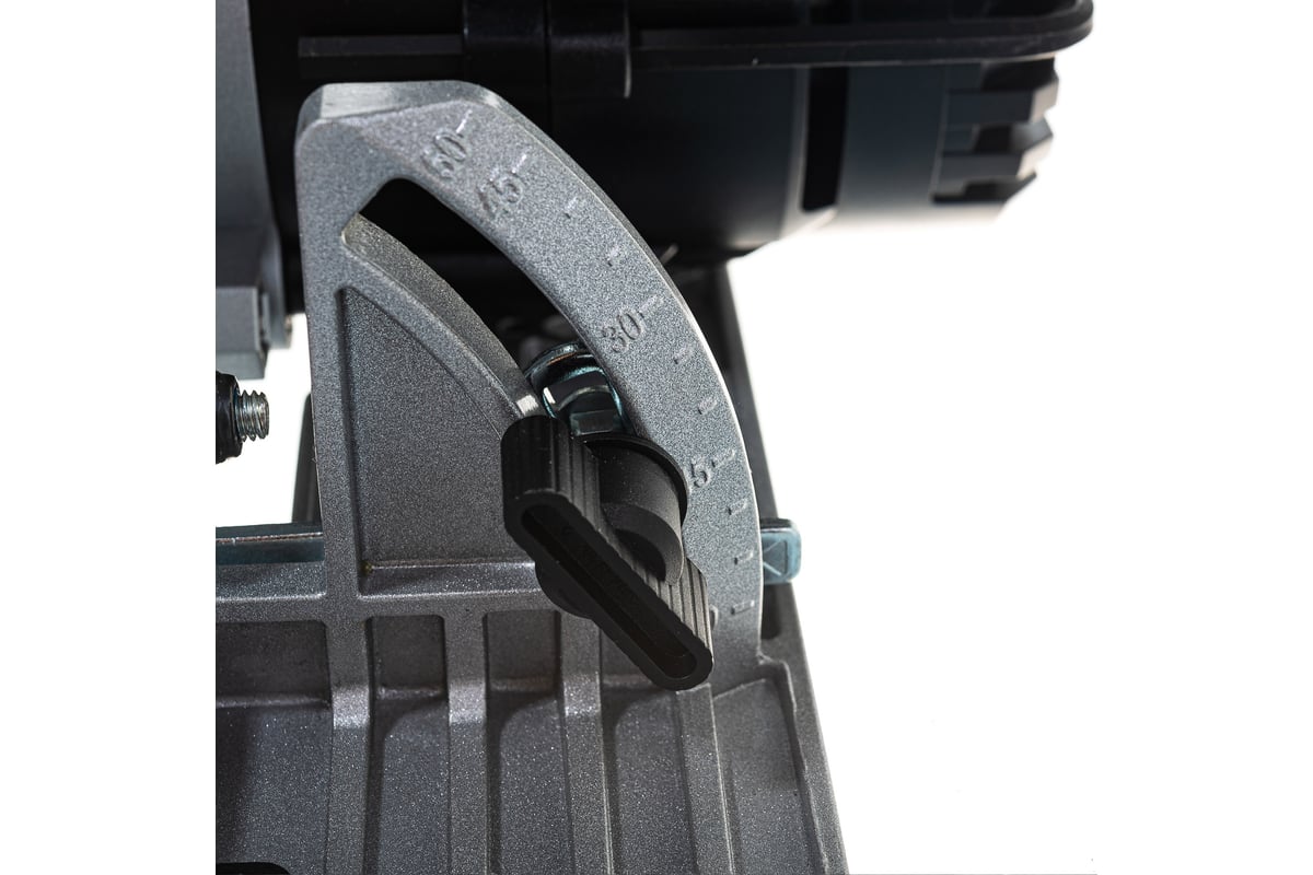 .Регулируемый угол наклона полотна обеспечивает гибкость обработки дерева. При обработке древесины под углом 90° глубина распила составит 55 мм, под углом 45° – 39мм. Регулировка угла осуществляется плавно и не ограничивается двумя положениями.