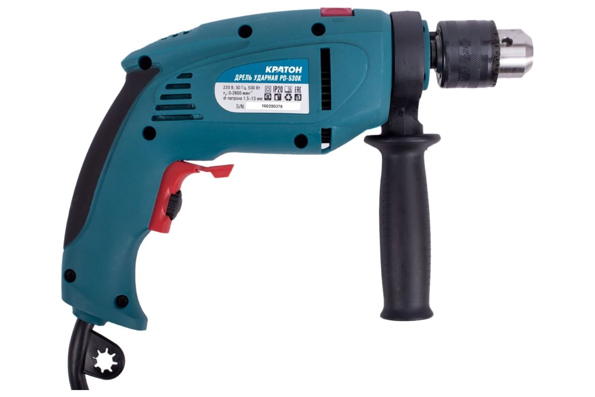 Дрель Кратон PD-530К 3 02 01 006 снабжена ключевым патроном, что обеспечивает надежную фиксацию оснастки. Есть функция удара, благодаря которой можно точно и быстро просверлить отверстие в бетонной или кирпичной стене. Дополнительная рукоятка обеспечивает лучший контроль над инструментом. В комплект входит оснастка, благодаря чему можно сразу приступить к работе. Кейс решает вопрос хранения и транспортировки.