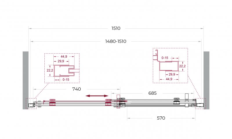 Раздвижные двери оборудованы одинарными роликами увеличенного диаметра, корпуса которых изготовлены из прочного сплава Zamak (цинко-алюминиево-магниево-медного состава) и нержавеющей стали. Такая комбинация материалов обеспечивает длительную и надежную эксплуатацию механизмов.