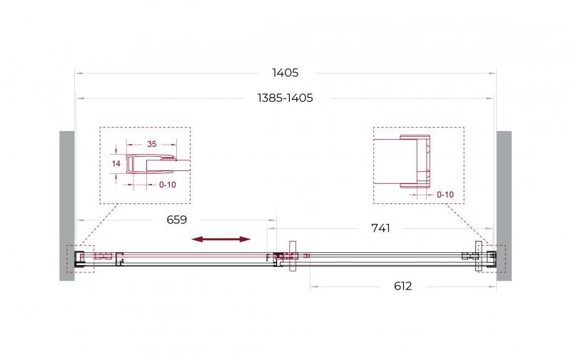- Габариты с диапазоном регулировок, мм (1385-1405)x2000