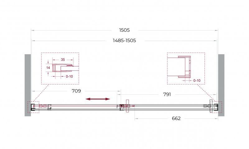 - Габариты с диапазоном регулировок, мм (1485-1505)x2000