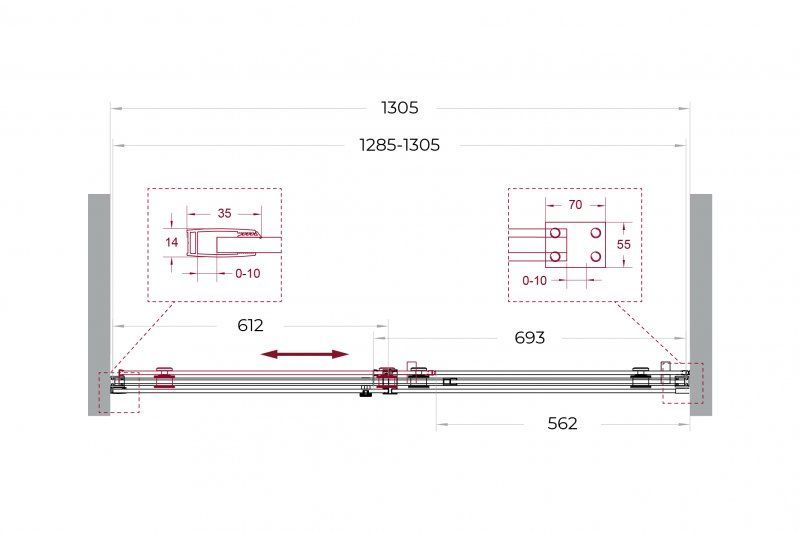 - Габариты с диапазоном регулировок, мм (1285-1305)x2000
