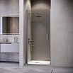 Душевая дверь изготовлена из стекла толщиной 6 мм, обеспечивающего превосходную прочность и долговечность. Прозрачный цвет стекла создает современный и открытый вид, а хромированный цвет профиля добавляет нотку элегантности. Общая высота двери составляет 1950 мм, что делает ее подходящей для большинства стандартных душевых кабин.