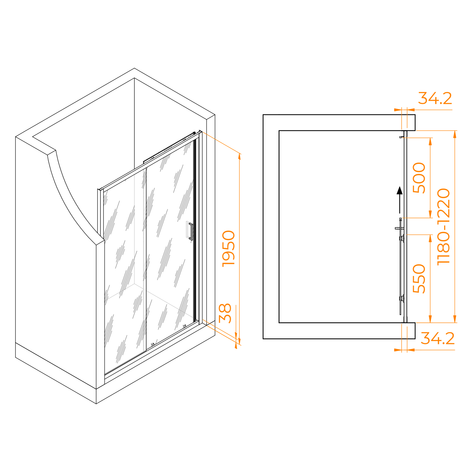 - Размеры с диапазоном регулировок: 1180-1220 мм
