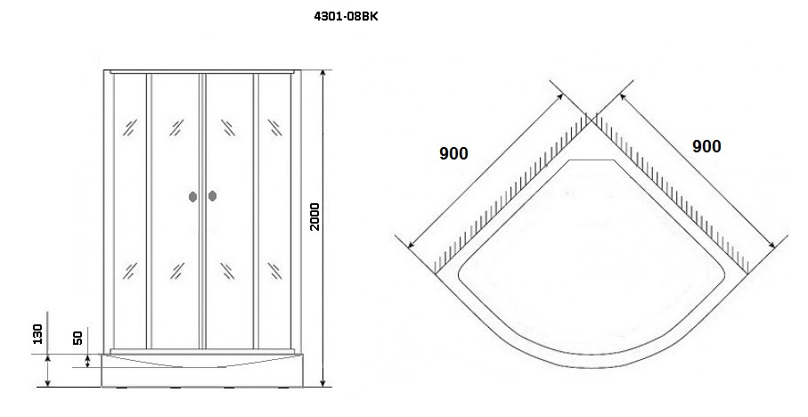 - Тип и высота поддона - низкий поддон 13 см, несъемный экран