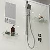 - Комплектация: смеситель, сифон, ручная лейка, шланг, 2-е полочки, зеркало, штанга держатель.