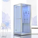 Пристенная душевая кабина с двумя прозрачными стенками.