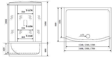 Душевая кабина Timo Standart T-6650 Black 150x88, прямоугольная, профиль черный