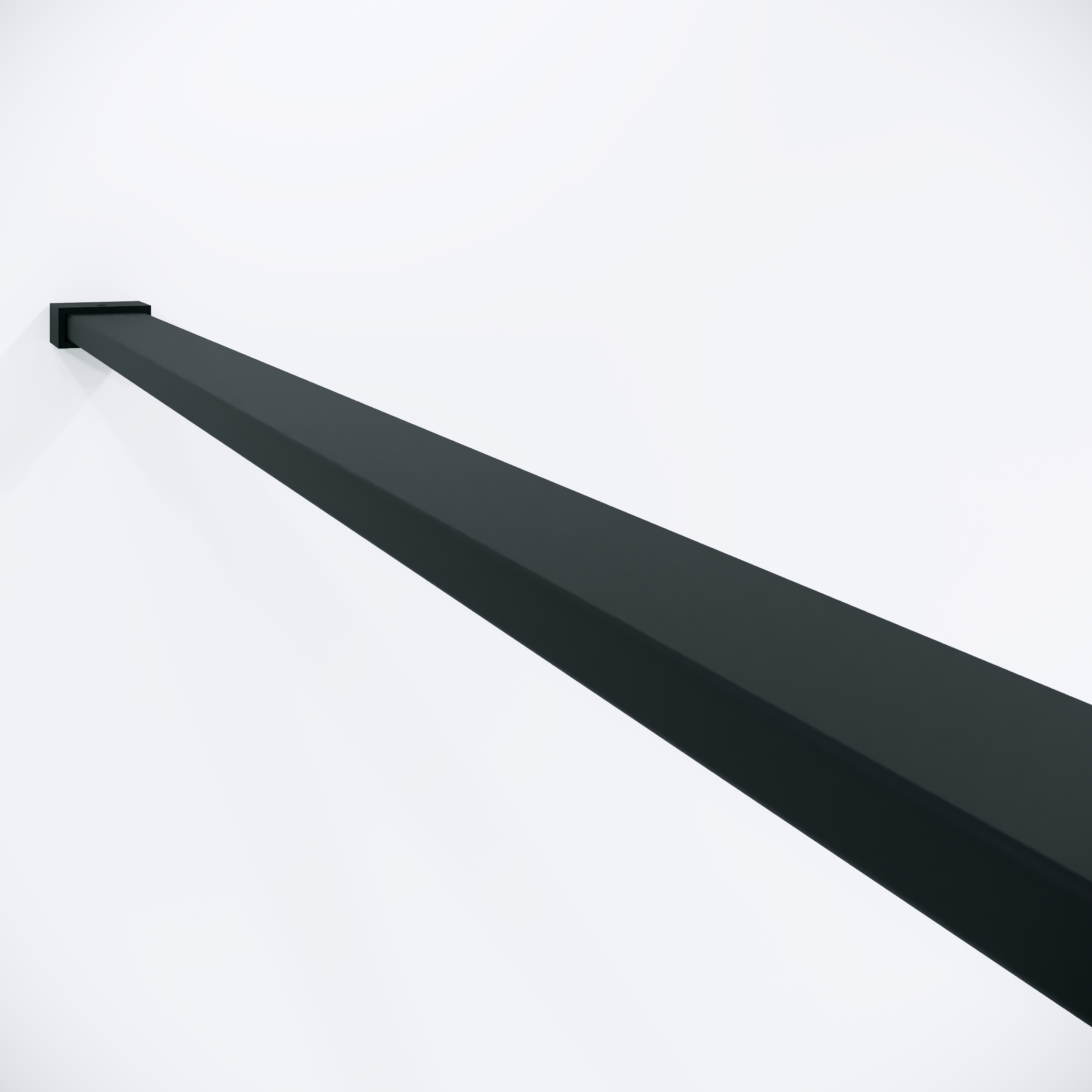 Телескопическая штанга с регулировкой от 700 до 1200 мм позволяет легко адаптировать душевую перегородку к различным размерам душевого пространства, обеспечивая идеальную посадку и плотное прилегание к стенам. Черный матовый изогнутый профиль придает ограждению современный и стильный вид, который гармонично впишется в любой дизайн ванной комнаты.- Исполнение полотна двери: текстурное закаленное стекло с эффектом битого стекла