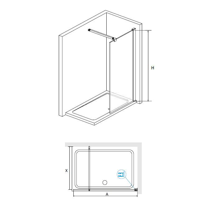 Душевая перегородка неподвижная. Длинна кронштейна 1200 мм. Трап или поддон приобретается отдельно. Занавеска для душа - дополнительная опция.