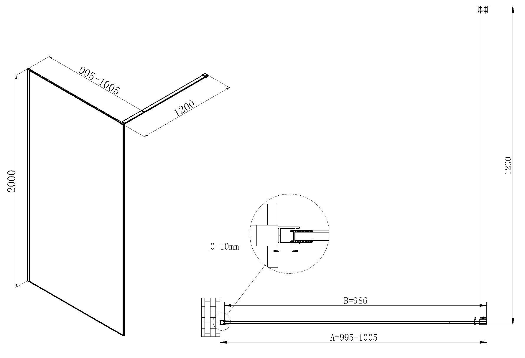 Душевая перегородка Vincea Walk-In VSW-7HS100GWG 100x200 матовое золото, с золотыми нитями