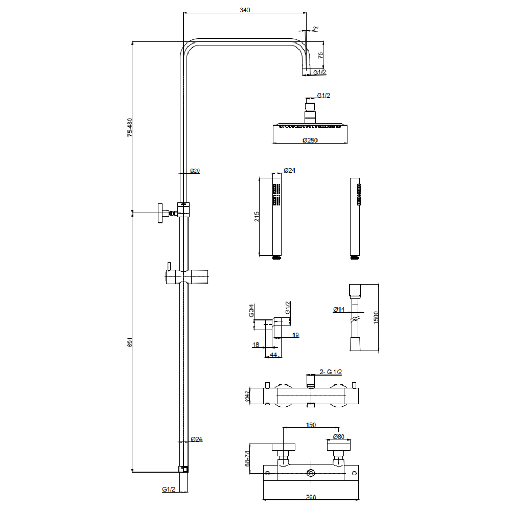 Душевая стойка AQUAme Siena AQM8006 с термостатом