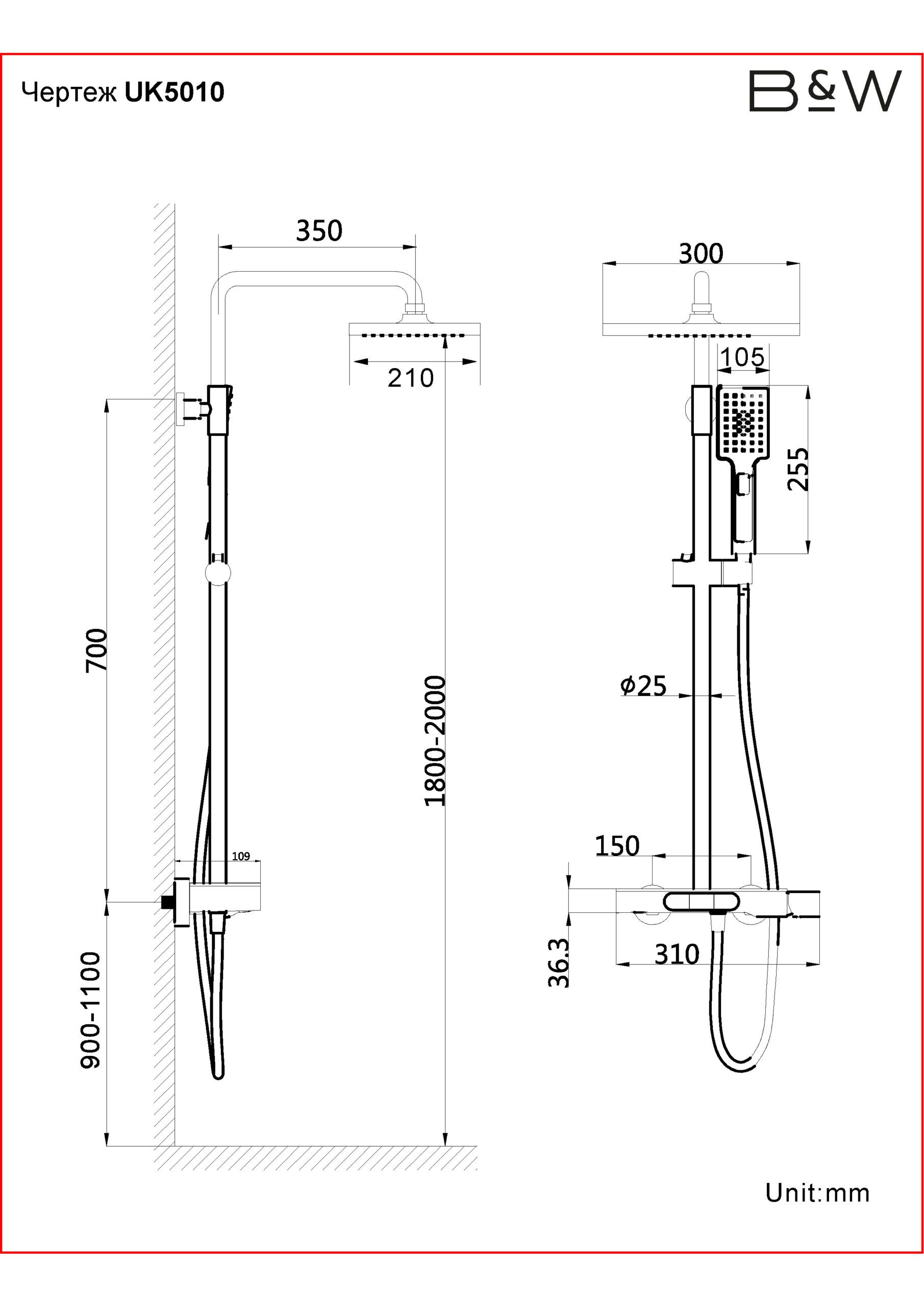 Душевая стойка Black&White Universe UK5010B черный матовый