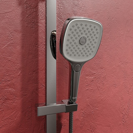 В основании излива скрыт дивертор: когда он повернут вперед, вода течет из излива, когда он сложен под корпус (что еще и эстетично и удобно) поток воды переключается на одну из леек. Ручная лейка благодаря особому строению форсунок (в каждой по три микроотверстия) и большому размеру делает поток воды объемным и мягким. Мощная струя из центра лейки для направленного массажа, мягкие струи для расслабления и их сочетание создают эффект настоящего спа и обеспечивает максимум удовольствия от принятия душа. Три режима меняются нажатием на кнопку. Верхняя прямоугольная лейка также имеет форсунки с тремя микроотверстиями и создает необычайно мягкий объемный поток воды, идеальный для домашнего тропического душа. Надежный корпус из прочной первичной латуни с пониженным содержанием свинца — стойкий к коррозии, резким изменениям давления и перепадам температуры воды. Хромированное покрытие устойчиво к появлению царапин и потускнению (при должном уходе).