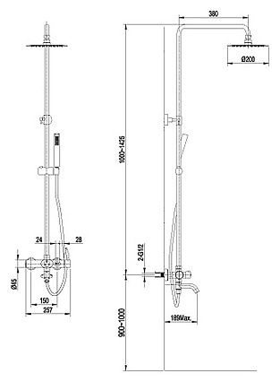 Смеситель для ванны с верхней душевой лейкой "Тропический дождь" и поворотным изливом, нержавеющая сталь.