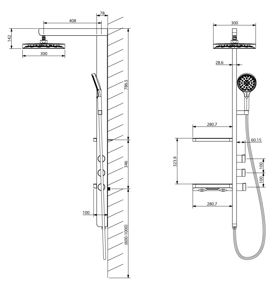 - Размер верхнего душа, мм: 300