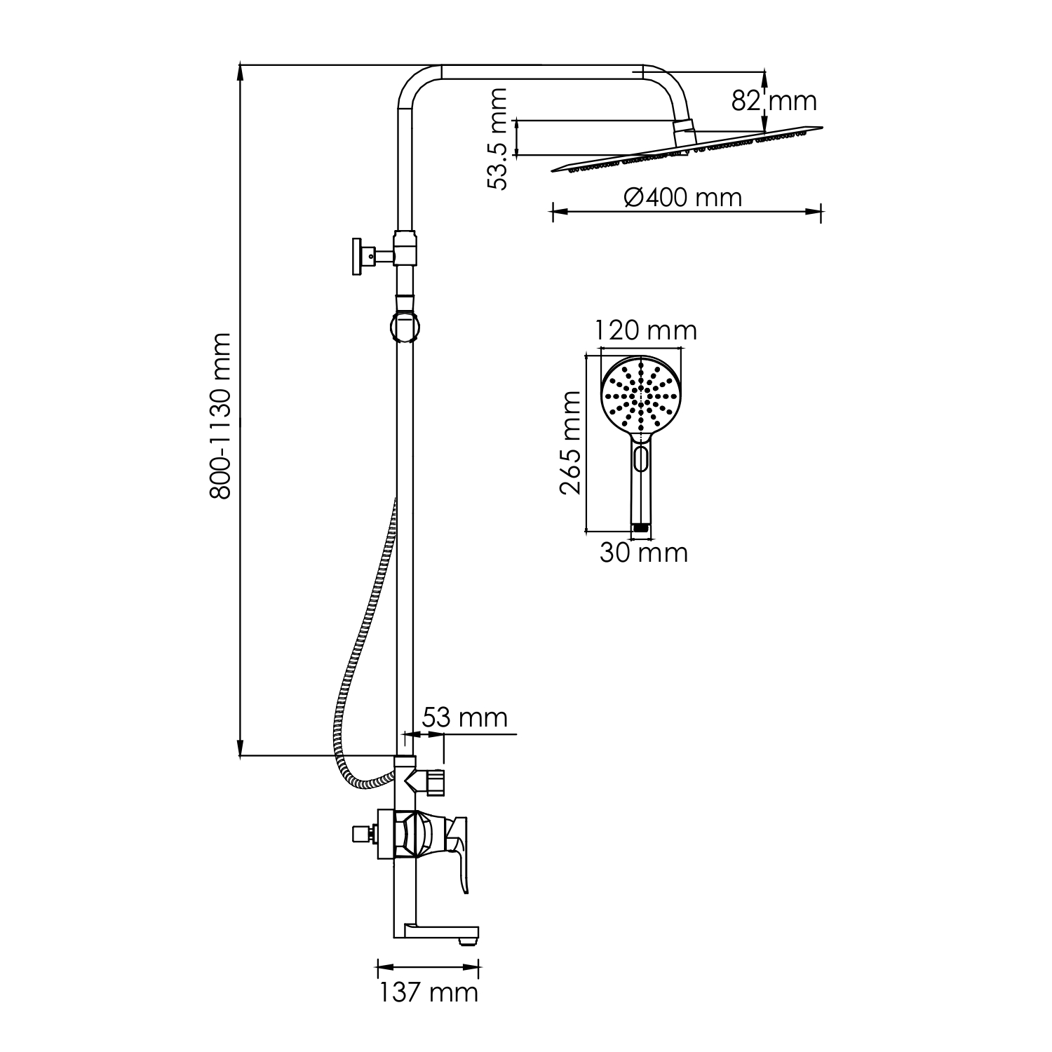 - Для душевого комплекта подходит удлинитель WasserKRAFT: А132 (30 см) и A 133 (40 см)