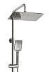 Душевая насадка для комплекта производится из нержавеющей стали. Форсунки из силикона с системой защиты от известковых отложений. Насадка крепится к стойке при помощи шарнирного соединителя, внутрь которого встроен сетчатый аэратор для равномерного распределения воды. Также шарнирный соединитель позволяет менять угол наклона душевой насадки от 0 до 22 градусов.