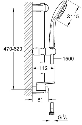 душевая штанга, 600 мм (27 499 000)
