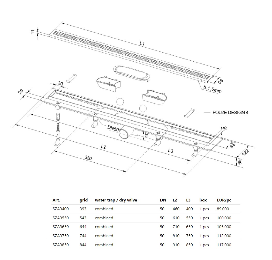 - Корпус трапа - полипропилен, толщина 1.5 мм
