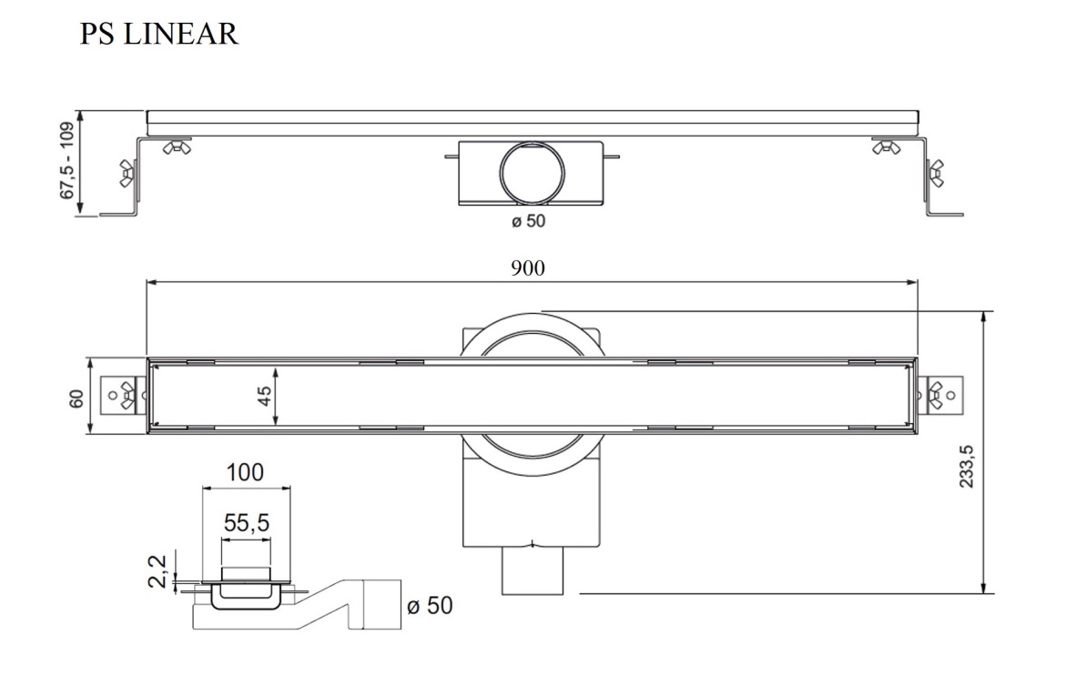 Душевой лоток Plumberia PSL Linear 90 см, черный матовый PSL90NO