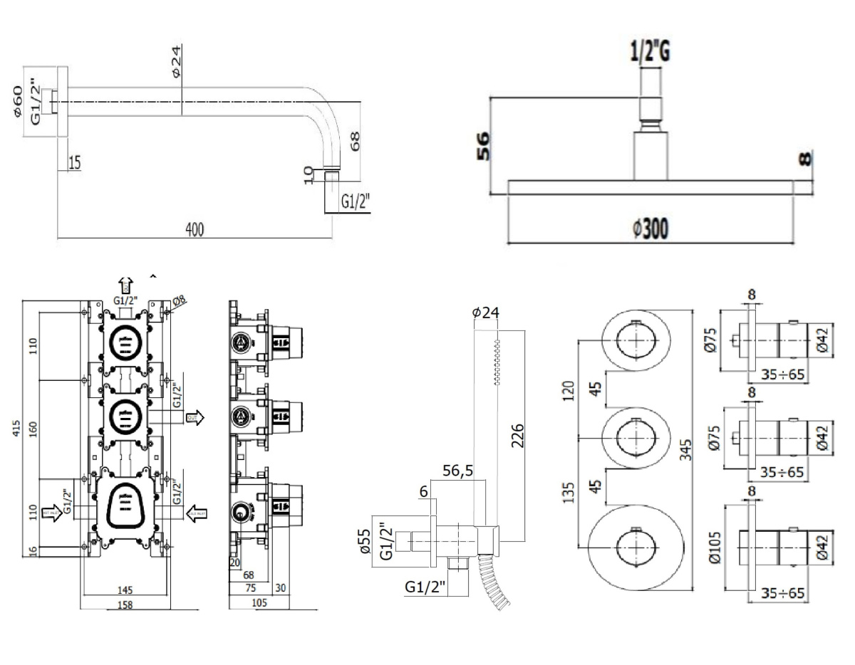 Душевой набор Paffoni Modular Box KITMB018CRKING душ 30 см, хром