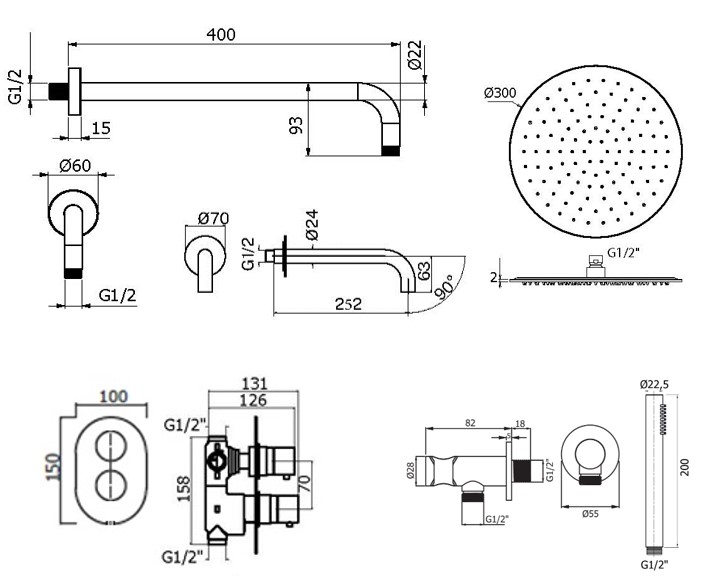 - SAT3130NO Настенное крепление верхнего душа 400мм из нержавеющей стали, черный матовый, Plumberia Selection
