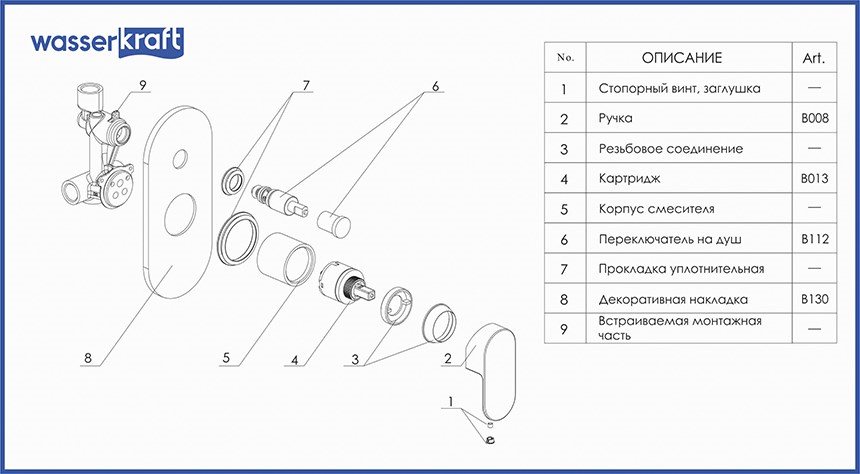 - Материалы: Латунь, хромоникелевое покрытие, ABS-пластик