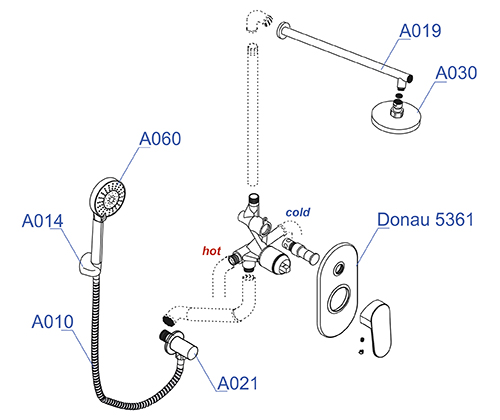 Душевой набор WasserKRAFT Donau A14030 с верхней душевой насадкой и лейкой