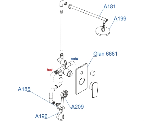 - Верхняя душевая насадка A199