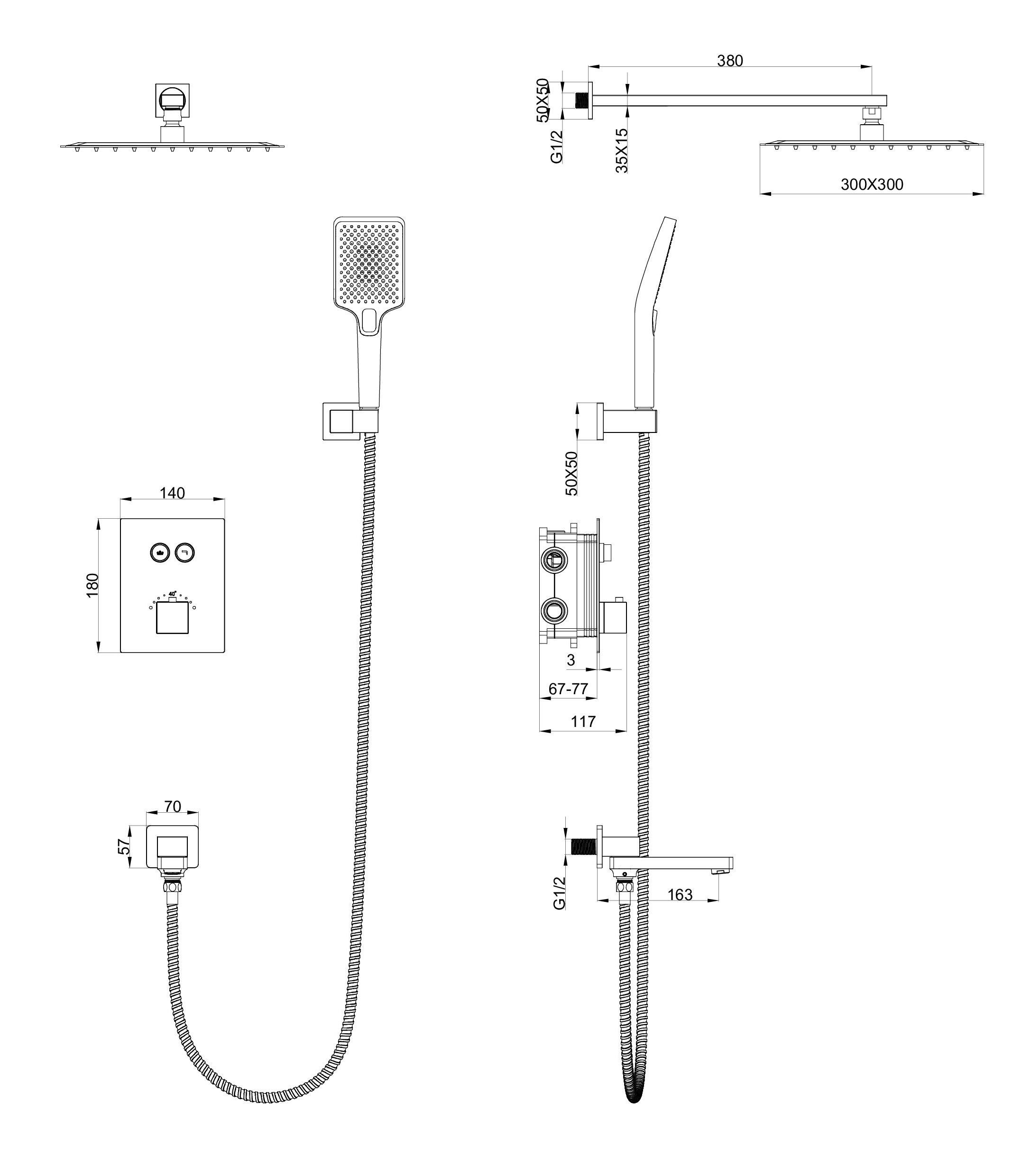 Душевой набор Wonzon&Woghand WW-88929003-BGM термостат, темный графит