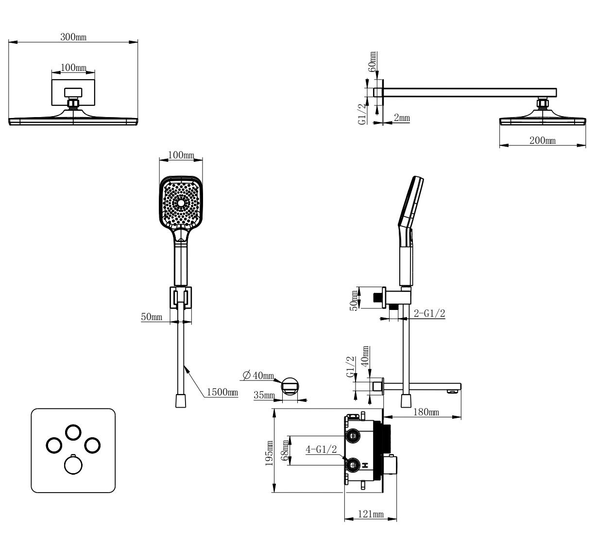 Душевой набор Wonzon&Woghand WW-B4005-BG термостат, брашированное золото