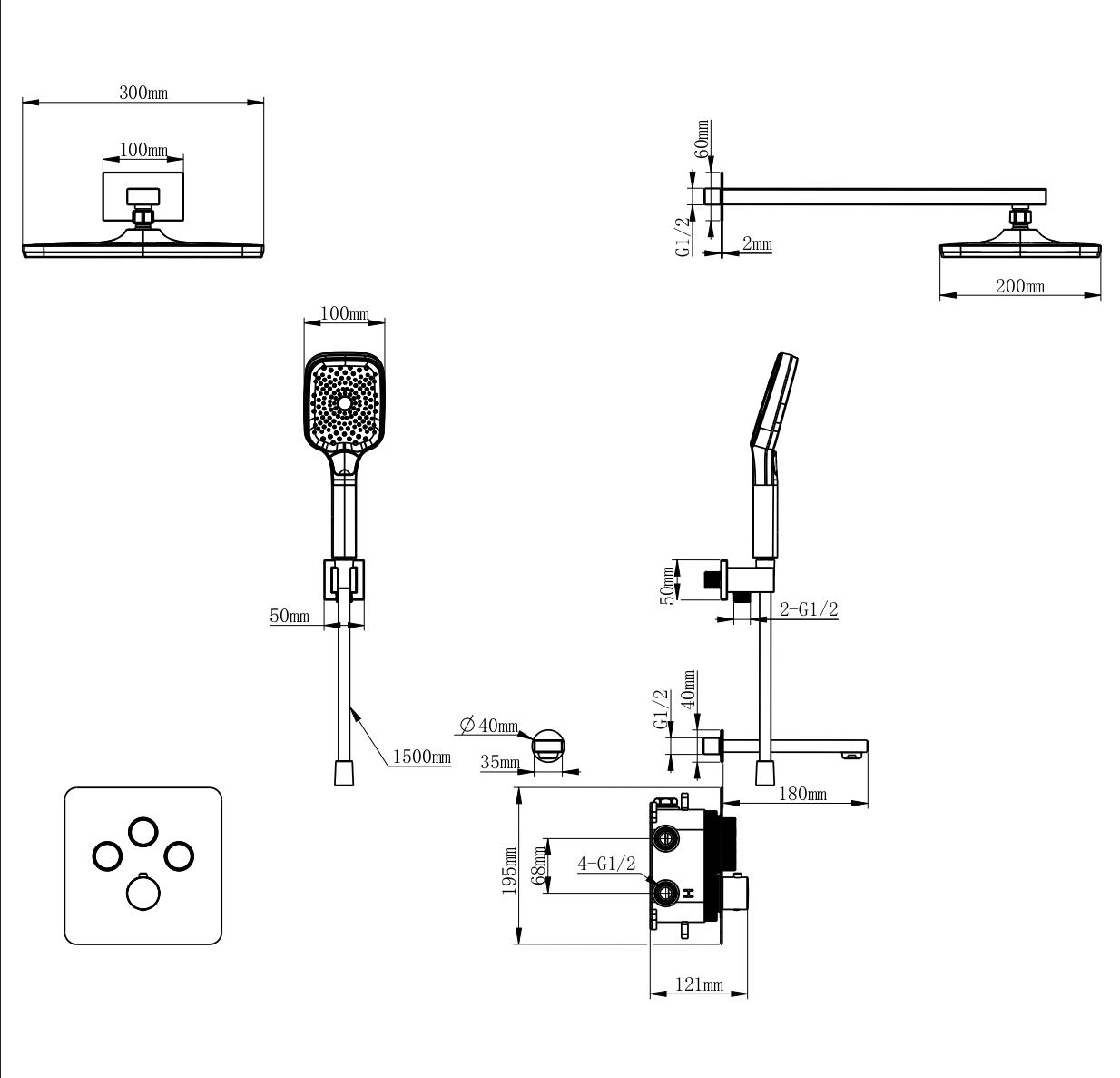 Душевой набор Wonzon&Woghand WW-B4005-MB термостат, черный матовый