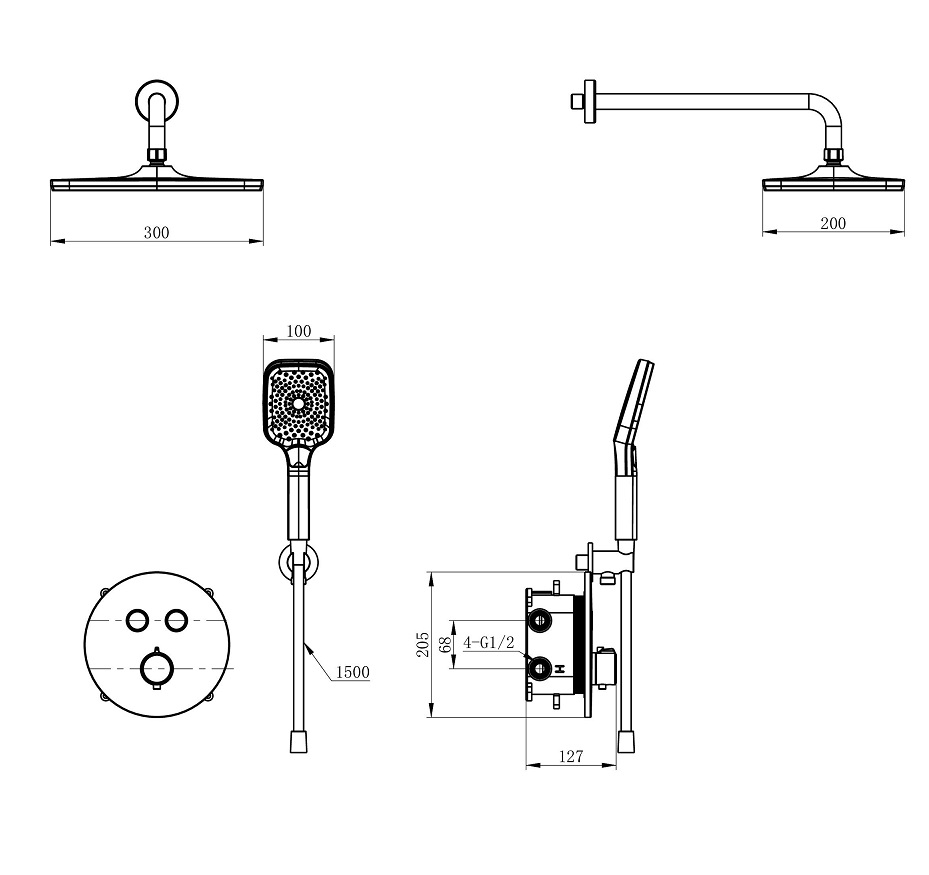 Душевой набор Wonzon&Woghand WW-D2017-A-CR термостат, хром